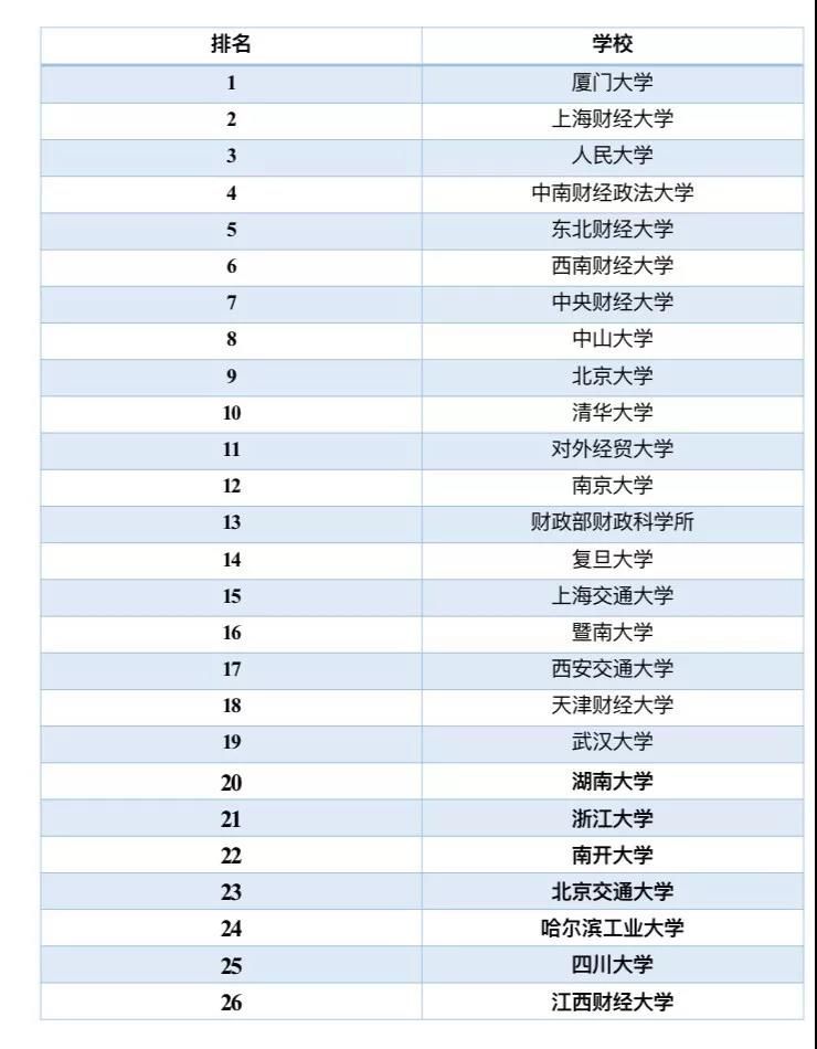 對(duì)外經(jīng)貿(mào)大學(xué)、上海交通大學(xué)、中山大學(xué)、暨南大學(xué)、財(cái)政部財(cái)科所、湖南大學(xué)、吉林大學(xué)、南開大學(xué)、武漢大學(xué)、西安交通大學(xué)、北京交通大學(xué)、四川大學(xué)、哈工大等。