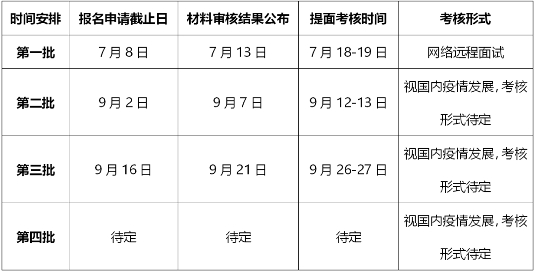 第一批次考生面試方式采用網絡遠程面試形式,后面批次將視國內疫情,考核形式待定。