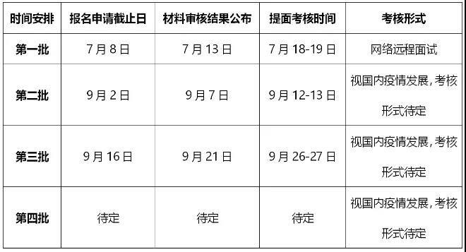 第一批次考生面試方式采用網絡遠程面試形式,后面批次將視國內疫情,考核形式待定。