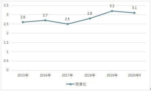 報考“扎堆”也意味著報錄比增大,甚至超過10:1。