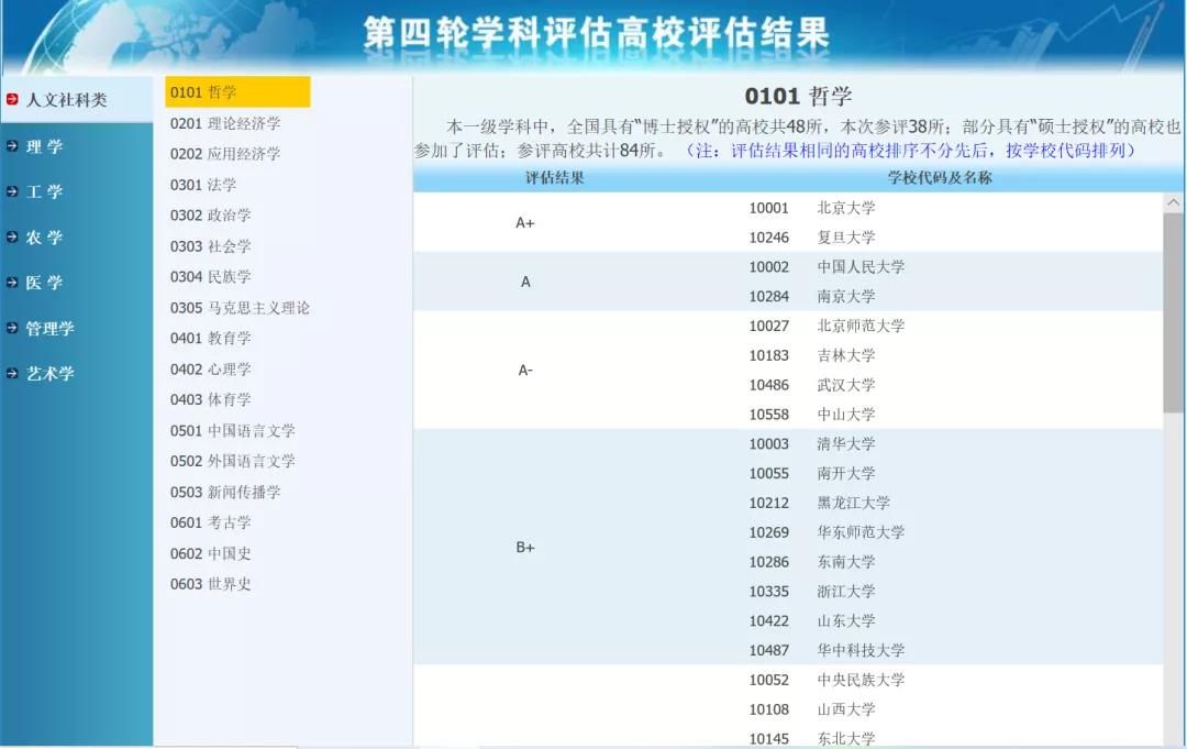 這里可以查到關于目標院校的專業實力排名,分為A+、A、A-、B+、B、B-、C+、C、C-,九個等級,雖然不是所有學校都參與了評估,但是可以為我們做一個參考。