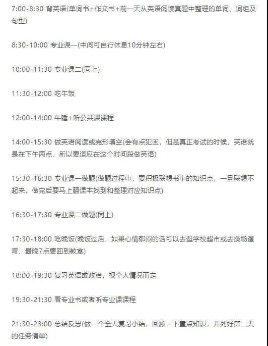 比如,一輪復(fù)習(xí)聽課,就要落在晚上進(jìn)行,這樣學(xué)習(xí)的知識(shí)才更好一步到位。到了后面學(xué)習(xí),晚上就可以拿來背書,做整套試卷等。