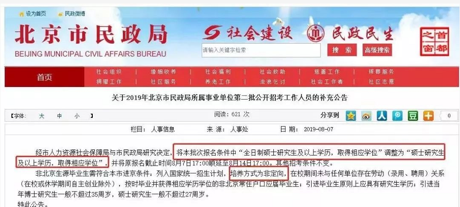 2019年8月7日,北京市民政局官網(wǎng),發(fā)布了如下的一則補充公告,標志著事業(yè)單位首次將兩者放在同等地位。