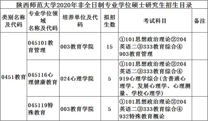 2020年陜西師范大學(xué)教育學(xué)考研非全日制專碩招生目錄
