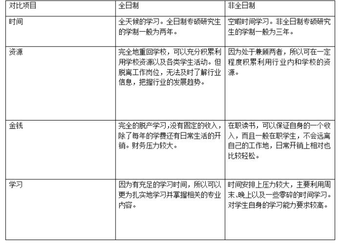 從上述可看出,全日制和非全日制最主要的區別在于就讀時學習方式的不同。