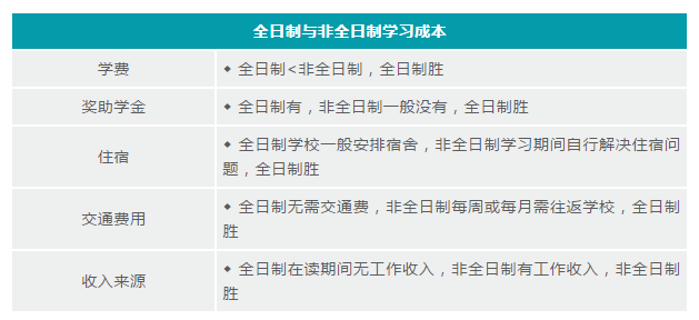 4、全日制與非全日制的學(xué)習(xí)成本