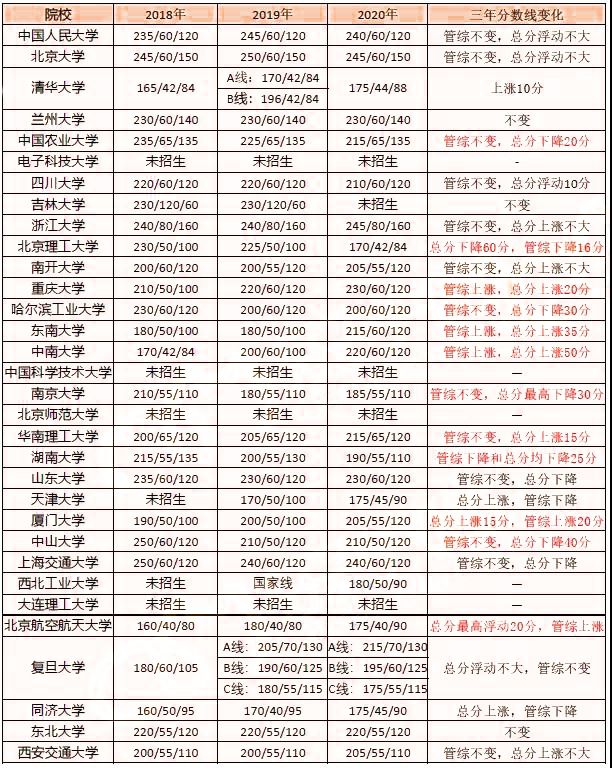 可以看出,很多厲害的院校分數線是很低的,比如清華大學和同濟大學只要175分、華南理工大學僅僅215分,湖南大學只要190分等等,前兩個是只招非全日制,而后兩個是全日制和非全統一劃線,從去年來看湖南大學的全日制的錄取分數要高達230-250分,所以相比而言,非全的分數還是相對較低。