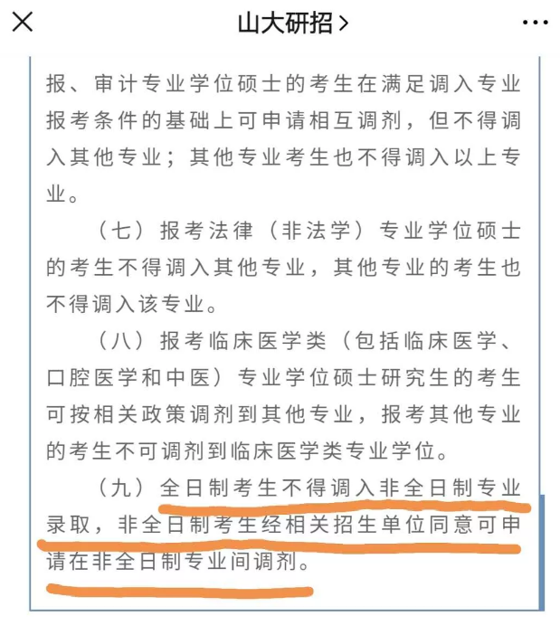 其實質就是:允許非全專業間調劑,但是不允許以往的全日制調劑到非全。