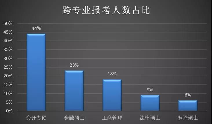 其次,中國教育在線調查數據還顯示,近三年,大學生考研會有52%的學生選擇跨專業考研,其中,跨考生中44%的考生會跨考到會計專碩MPAcc。