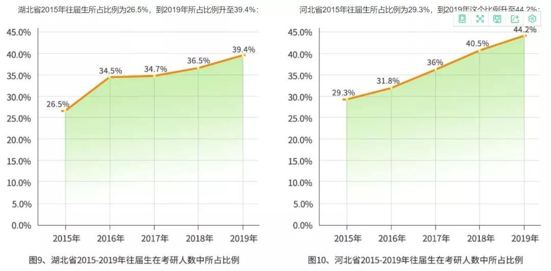 再次,由于分數線呈上升趨勢,而且各個院校在對教育部擴招政策的相應下,會抓好錄取質量,對應考試難度增加,使得往屆生的比例繼續攀升,從而又加劇了來年的考試難度。
