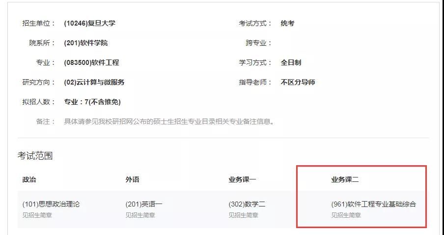 從公告中顯示的情況來看,軟件學(xué)院的軟件工程學(xué)碩妥妥的就是停止招生了,就算是其研究方向調(diào)整到計(jì)算機(jī)科學(xué)與技術(shù)學(xué)院相關(guān)專業(yè)招生,本質(zhì)上專業(yè)代碼就已經(jīng)發(fā)生了更改,這已經(jīng)不能算作僅僅是換了一個(gè)學(xué)院進(jìn)行招生的情況。這里專業(yè)代碼的更換,大多數(shù)時(shí)候都會(huì)涉及到專業(yè)課的更改。盡管今年最新的招生專業(yè)目錄還沒有出來,官網(wǎng)顯示會(huì)在9月份才發(fā)布,但是參考20年的專業(yè)目錄,這兩個(gè)學(xué)院的相關(guān)專業(yè)初試專業(yè)課考試科目確實(shí)有所差別。軟件學(xué)院之前開設(shè)的軟件工程學(xué)碩專業(yè),專業(yè)課考試科目為961軟件工程專業(yè)基礎(chǔ)綜合,且公共課中的數(shù)學(xué)是考數(shù)學(xué)二。
