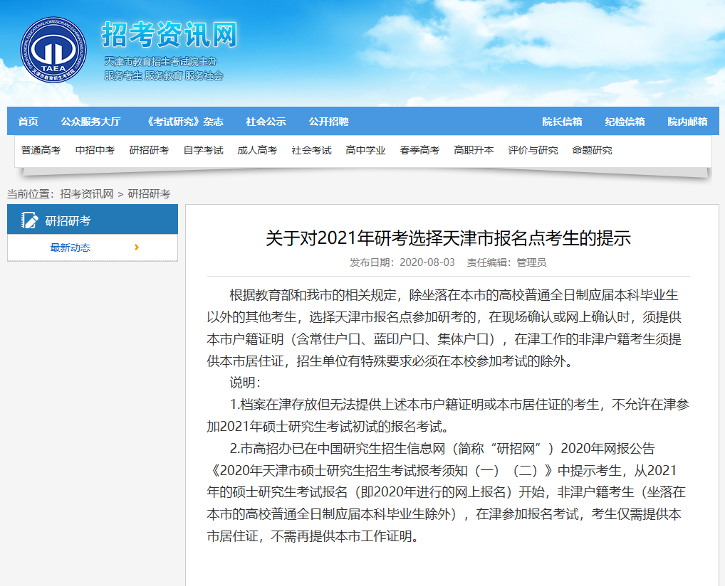 以上是小編為大家整理的“天津市公布報(bào)考點(diǎn)公告!它和報(bào)考單位、考點(diǎn)區(qū)別在哪?”的相關(guān)內(nèi)容,希望對(duì)大家考研有所幫助!