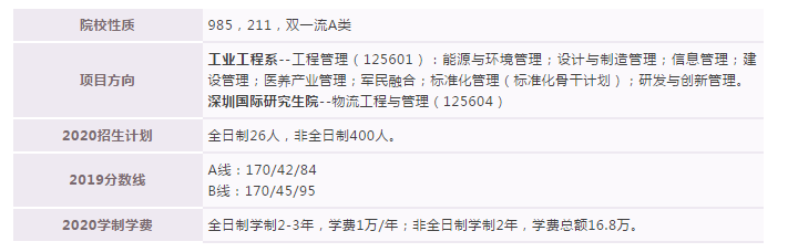 清華大學MEM有兩個學院,一個是工業工程系的,僅非全日制學習方式,有提前面試政策;另一個是深圳國際研究生院,僅全日制學習方式,學習地點在深圳,但復試須前往北京校本部進行。