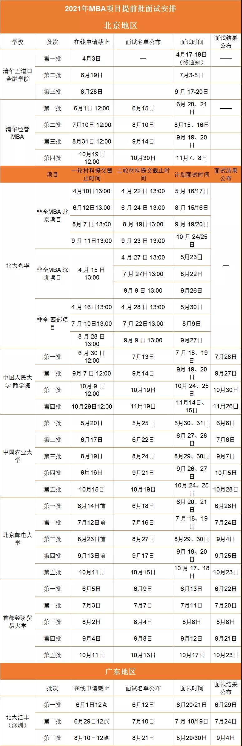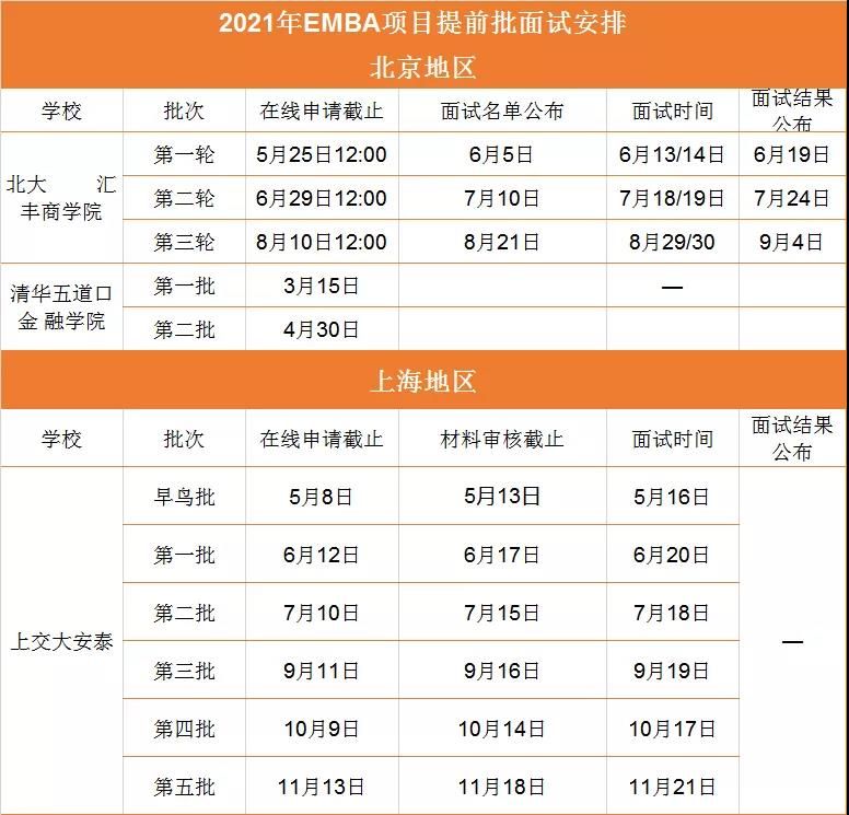 注:上海交大安泰MBA項目2008年在全國首推提前面試政策,之后復旦、清華、北大等名校紛紛跟進,截至目前,北京、上海地區絕大多數MBA院校以及其他一些地區的名校都已經實行了提前面試。