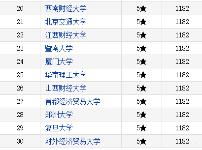 對于財經(jīng)學(xué)專業(yè),中國人民大學(xué),中央財經(jīng)大學(xué),對外經(jīng)濟貿(mào)易大學(xué),西南財經(jīng)大學(xué),中南財經(jīng)政法大學(xué)包攬前五名。