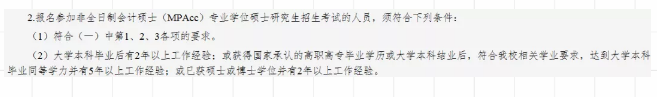 所以,可以看出來大部分院校,對(duì)于非全MPAcc應(yīng)屆生還是蠻友好的,規(guī)定并沒有那么嚴(yán)苛,也不會(huì)太要求工作經(jīng)驗(yàn)。